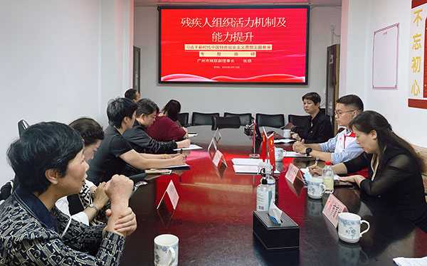 结合主题党日,张扬副理事长与专门协会负责人和残疾人代表进行座谈调研,通过座谈了解残疾人社会组织及残疾人的现阶段的意识形态状况,针对残疾人关心的重点难点工作进行讲解,引领残疾人一同为广州经济社会建设贡献力量。结合主题教育,张扬副理事长开展助残社会组织分类体系及活力机制专题调研,在本次座谈中听取了残疾人社会组织的活动构想和存在困难以及组织发展的意见和建议。