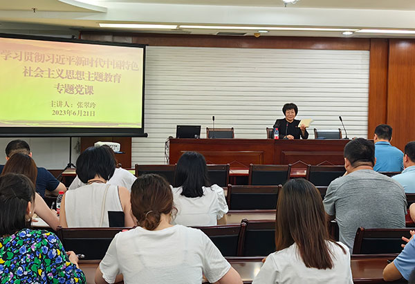 6月21日上午,广州市残联党组成员、副理事长张翠玲到市残体中心为全体干部职工讲授学习贯彻习近平新时代中国特色社会主义思想主题教育专题党课。