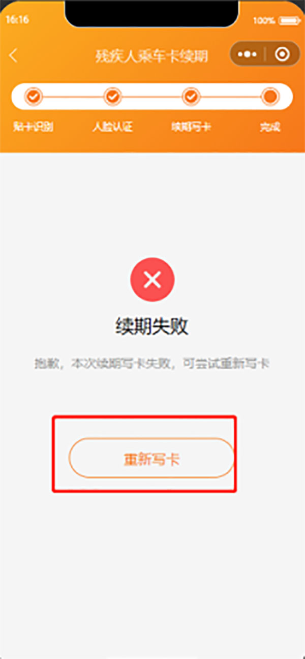 ?。ǘ┏鱿稚鲜鲆趁婧?,将卡再次贴在手机背面NFC感应区,点击“重新写卡”再次进行续期。