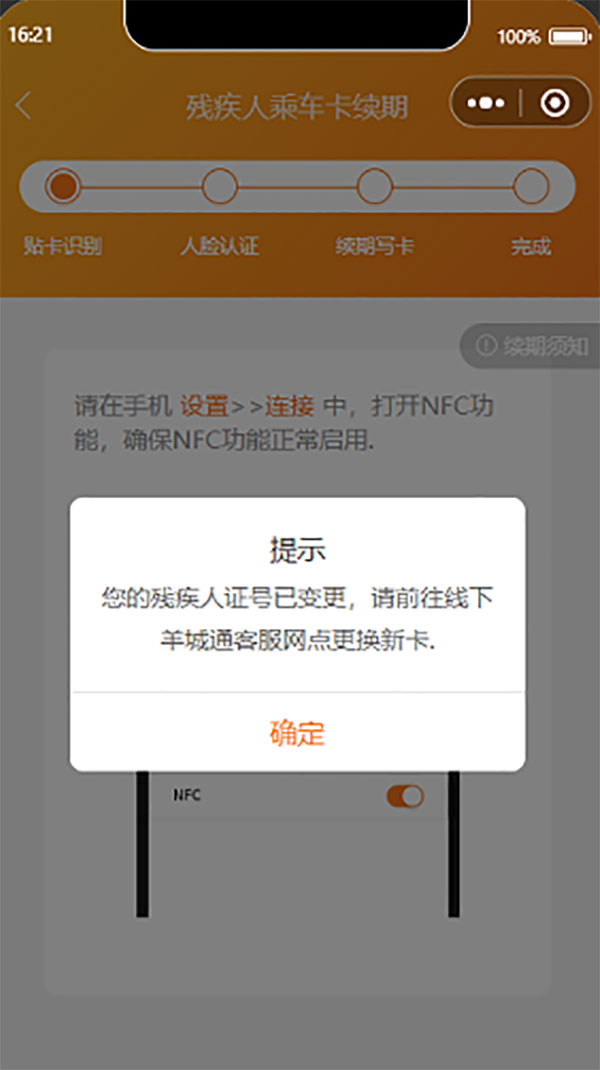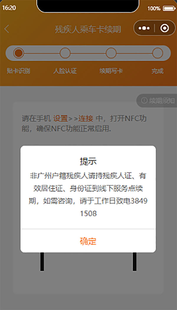 (五)当为非广州户籍残疾人乘车卡而无法进行续期的提示语